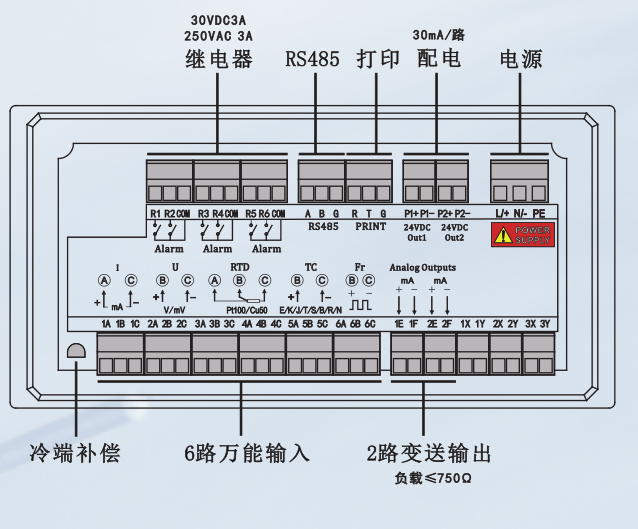 ■ 6路万能信号输入通道,可输入多种信号,无需跳线,通过软件组态即可。